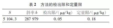 由表2可知,苯并(a)芘的檢出限為0.05μg/kg,定量限為0.18μg/kg。
