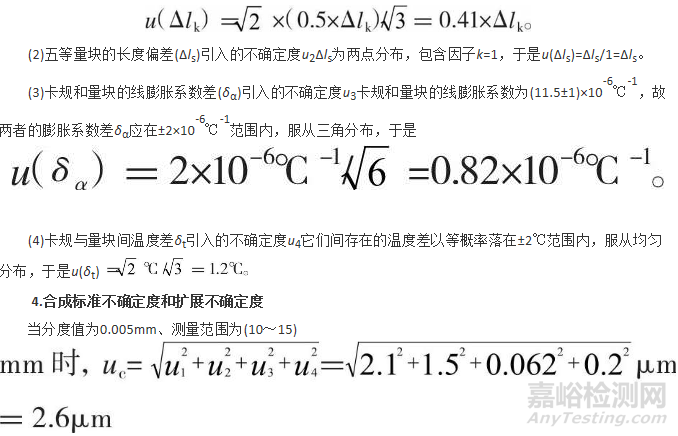 e=lk-ls,考慮校準時測量不確定度因素影響,則變換為e=lk-l+LΔtδα-Lαδt式中:e——卡規(guī)示值誤差;lk——卡規(guī)示值(20℃條件下) ;ls——量塊的標稱值(20℃條件下)。