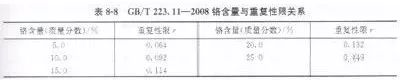 ②假如平行樣測試的結(jié)果分別為D1=15.01%,D2=15.18%,則D2一D1=15.18—15.01=0.17(%)。從表8—7中可知,對應(yīng)的重復(fù)性限是r=O.114%。(D2一D1)>r,則說明測試結(jié)果的精密度存在問題。該平行樣測試結(jié)果不被接收,若調(diào)查原因。