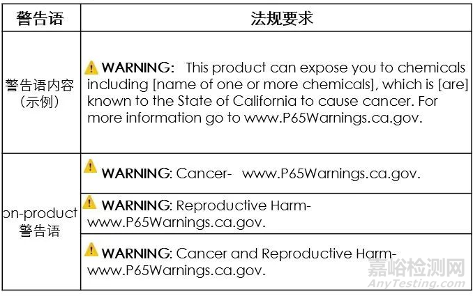 沒有,加州 65 法案中針對某類產(chǎn)品中的清單物質(zhì)并未設(shè)定限值,由于物質(zhì)濃度并非決定是否會產(chǎn)生暴露風險的唯一因素,因此限值不足以決定是否需要提供警示。