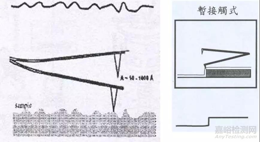 類似非接觸式AFM,比非接觸式更靠近樣品表面。損害樣品的可能性比接觸式少(不用側(cè)面力,摩擦或者拖拽)。