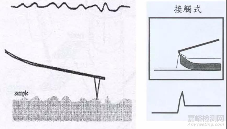 接觸式AFM是一個(gè)排斥性的模式,探針尖端和樣品做柔軟性的“實(shí)際接觸”,當(dāng)針尖輕輕掃過(guò)樣品表面時(shí),接觸的力量引起懸臂彎曲,進(jìn)而得到樣品的表面圖形。由于是接觸式掃描,在接觸樣品時(shí)可能會(huì)是樣品表面彎曲。經(jīng)過(guò)多次掃描后,針尖或者樣品有鈍化現(xiàn)象。