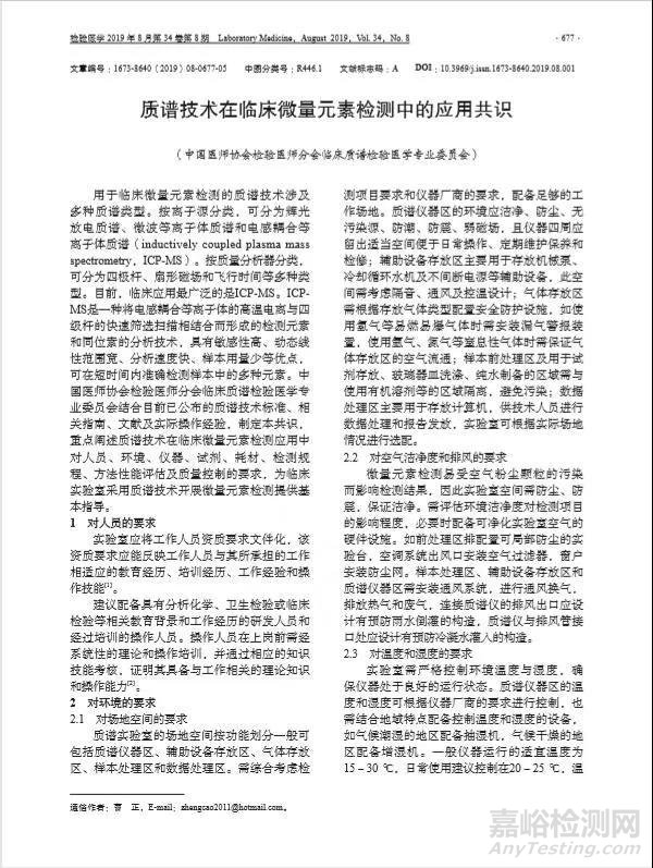 與國(guó)外發(fā)展水平相比,我國(guó)質(zhì)譜技術(shù)的臨床應(yīng)用還非常有限,很多相關(guān)部分還需要進(jìn)一步完善,例如:質(zhì)譜檢測(cè)數(shù)據(jù)的判斷標(biāo)準(zhǔn)、技術(shù)方法的掌握與人員培訓(xùn)、質(zhì)量控制體系的建立等等。其中,方法學(xué)和質(zhì)量管理體系是檢測(cè)結(jié)果和應(yīng)用的關(guān)鍵。在中國(guó)醫(yī)師協(xié)會(huì)檢驗(yàn)醫(yī)師分會(huì)臨床質(zhì)譜檢驗(yàn)醫(yī)學(xué)專(zhuān)業(yè)委員會(huì)的指導(dǎo)下,首都醫(yī)科大學(xué)北京婦產(chǎn)醫(yī)院檢驗(yàn)科質(zhì)譜中心攜手國(guó)內(nèi)頂尖臨床質(zhì)譜應(yīng)用專(zhuān)家,結(jié)合目前已公布的質(zhì)譜技術(shù)標(biāo)準(zhǔn)、相關(guān)指南、文獻(xiàn)及實(shí)際操作經(jīng)驗(yàn),制定本共識(shí),重點(diǎn)闡述質(zhì)譜技術(shù)在臨床微量元素檢測(cè)應(yīng)用中對(duì)人員、環(huán)境、儀器、試劑、耗材、檢測(cè)規(guī)程、方法性能評(píng)估及質(zhì)量控制的要求,為臨床實(shí)驗(yàn)室采用質(zhì)譜技術(shù)開(kāi)展微量元素檢測(cè)提供基本指導(dǎo)。