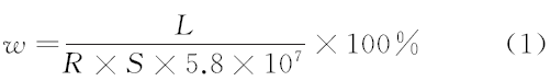 式中:w為導電率;L為試樣測試長度;R為電阻;S為試樣的橫截面積。