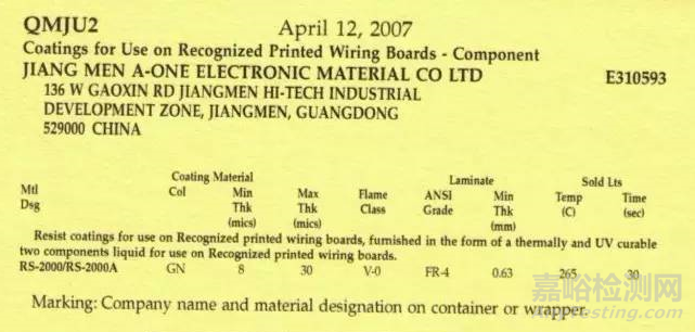 黃卡(Yellow Card)是指獲得上述認(rèn)證并作了UL注冊(cè)的材料或部件的數(shù)據(jù)表。匯集這些數(shù)據(jù)的書稱為《黃書》(Yellow Book)。黃卡目前可從UL網(wǎng)站獲取。其查閱步驟簡(jiǎn)明易用,敬請(qǐng)參閱。