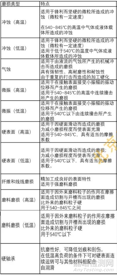 表1常見磨損類型特點(diǎn)及涂層材料