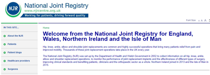 第一個(gè)是:NJR, 全稱是National Joint Registry. 它是英格蘭,威爾士,北愛(ài)爾蘭和馬恩島的國(guó)家關(guān)節(jié)注冊(cè)系統(tǒng)(NJR)收集有關(guān)髖,膝,踝,肘和肩關(guān)節(jié)置換手術(shù)的信息,并監(jiān)視關(guān)節(jié)置換植入物的性能。NJR于2003年4月開(kāi)始收集數(shù)據(jù),自2011年4月起,必須向國(guó)家衛(wèi)生系統(tǒng)(National health system)組織提交數(shù)據(jù)。是全球最大的關(guān)節(jié)置換注冊(cè)系統(tǒng),截止到日前有將近200萬(wàn)條記錄。