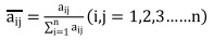 計(jì)算指標(biāo)的歸一化權(quán)重系數(shù)。其中aij表示矩陣第i行的第j個(gè)數(shù)字,n為矩陣列數(shù)。
