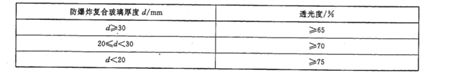 防爆炸復合玻璃是根據(jù)厚度來要求透光度的,具體要求如下表: