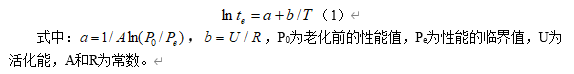 式中:,,P0為老化前的性能值,Pe為性能的臨界值,U為活化能,A和R為常數(shù)。