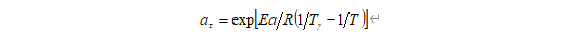 基于疊加原理的壽命預(yù)測模型的原理是時(shí)溫等效原理,即高聚物的同一力學(xué)松弛現(xiàn)象可以在較高的溫度、較短的時(shí)間(或較高的作用頻率)觀察到,也可以在較低的溫度下、較長時(shí)間內(nèi)觀察到。因此,升高溫度與延長觀察時(shí)間對分子運(yùn)動(dòng)是等效的,對高聚物的粘彈行為也是等效的。由此理論最終得到的數(shù)學(xué)計(jì)算公式如下: