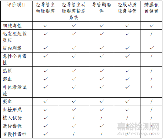 該產(chǎn)品包括經(jīng)導(dǎo)管主動脈瓣膜、經(jīng)導(dǎo)管主動脈瓣膜輸送系統(tǒng)、導(dǎo)管鞘套件、經(jīng)股動脈球囊導(dǎo)管和瓣膜預(yù)置裝置五個部分,其中瓣膜為植入器械,與循環(huán)血液長期接觸;輸送系統(tǒng)、導(dǎo)管鞘套件和經(jīng)股動脈球囊導(dǎo)管為外部接入器械,與循環(huán)血液短期接觸。瓣膜預(yù)置裝置不與人體接觸。申請人按照GB/T 16886系列標準對所有部件分別進行了生物相容性評價,產(chǎn)品的生物相容性風(fēng)險可接受,具體評價項目詳見表3。