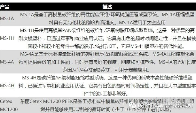表1.短切預(yù)浸料(Toray Advanced Composite提供)中碳纖維/樹脂組合的示例