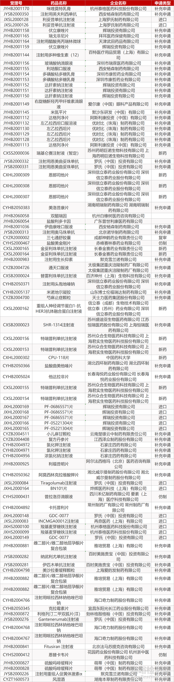 1. CDE最新受理情況(06月30日)