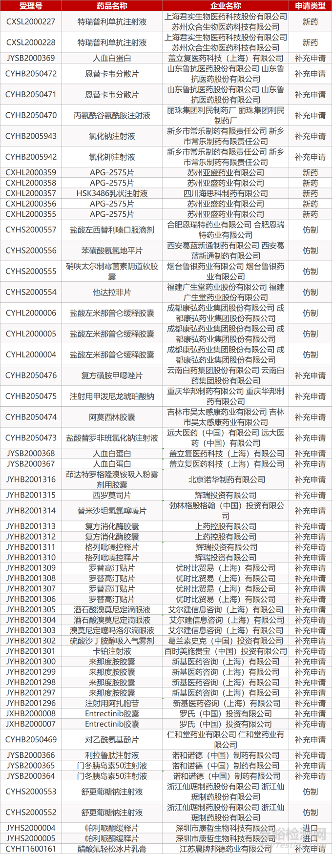 1. CDE最新受理情況(08月09日)