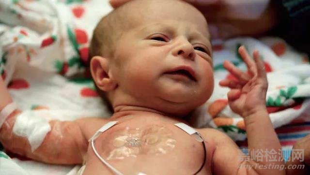 在新生兒重癥監(jiān)護室中,將足夠柔軟的皮膚傳感器用于早產(chǎn)兒的皮膚上,可以監(jiān)測他們的生命體征(圖片版權(quán)屬于J. Rogers/西北大學(xué))