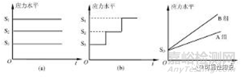 按照試驗應(yīng)力的加載方式,加速壽命試驗通常分為恒定應(yīng)力試驗、步進應(yīng)力試驗和序進應(yīng)力試驗三種基本類型,如圖所示。它們分別表示了三種基本加速壽命試驗的應(yīng)力加載歷程。