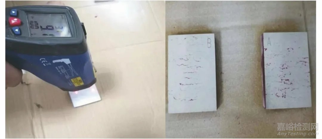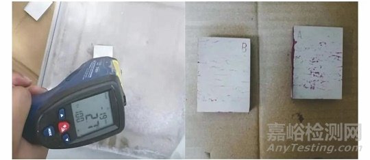 (1) 標準溫度條件下,15℃試塊的痕跡顯示清晰可見。