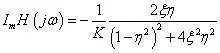 在η=1,即ω=ωn 處,實(shí)部為零,虛部為-1/2ξK,接近最小值。由此可以確定出系統(tǒng)的固有頻率ωn;