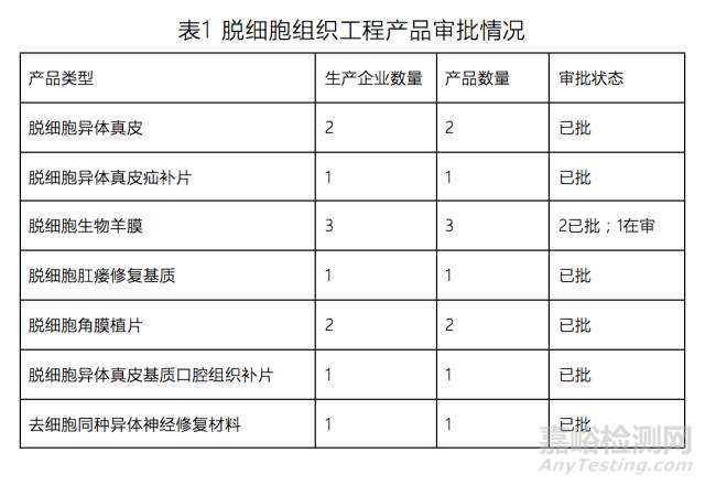 我國(guó)目前審評(píng)審批的脫細(xì)胞組織工程產(chǎn)品情況如表1所示: