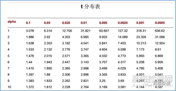 備注:雙側(cè)90%(0.1)即單側(cè)95%(0.05)