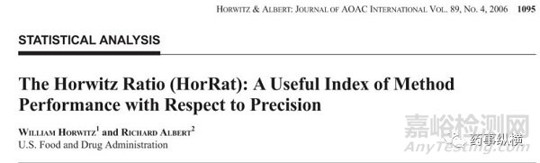 [4] The horwitz ratio: a useful index of method performane with respect to precision