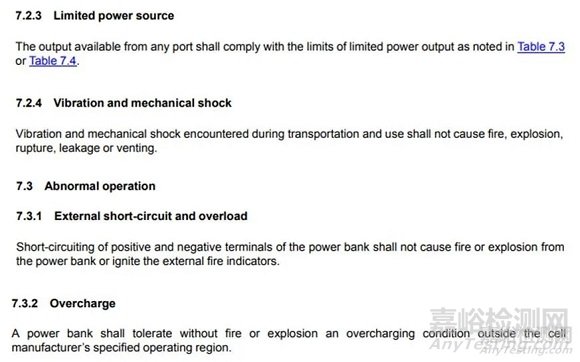 4. 其它有更新或增加的測(cè)試要求: 限制功率測(cè)試,振動(dòng)和機(jī)械沖擊測(cè)試,元器件和接觸面溫度限制,短路和過載測(cè)試,過充電測(cè)試等。