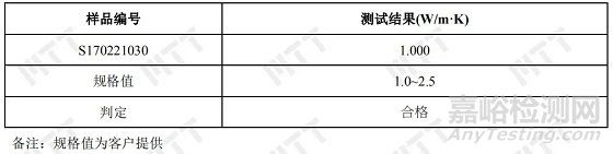 該樣品為2.0MM厚的鋁基板,需要進(jìn)行導(dǎo)熱系數(shù)測(cè)量,客戶提供相應(yīng)的規(guī)格值,若該樣品滿足規(guī)格值的范圍,即為合格樣品,否則判定為不合格。