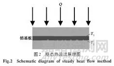穩(wěn)態(tài)熱流法根據(jù)一維穩(wěn)態(tài)導(dǎo)熱的原理來(lái)測(cè)試材料的導(dǎo)熱系數(shù)。測(cè)試時(shí),給鋁基板施加恒定的熱流,使熱流垂直流過(guò)鋁基板,側(cè)向無(wú)熱擴(kuò)散,測(cè)量鋁基板上下表面的溫度,然后計(jì)算鋁基板的導(dǎo)熱系數(shù),此方法的測(cè)試原理如下圖所示。