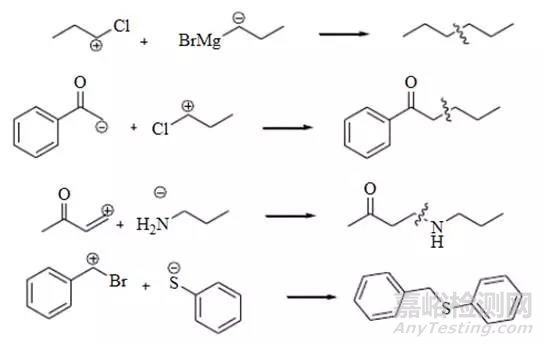 所以,學(xué)習(xí)化學(xué)反應(yīng)時,主要的任務(wù)就是了解各種正電性的基團(tuán)和負(fù)電性的基團(tuán)。這些正電性的基團(tuán)和負(fù)電性的基團(tuán)稱之為合成子。下面舉例簡單說明: