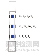 根據(jù)ASTM E1012—2014,4個(gè)應(yīng)變片位于試樣棒的不同方位的同一層,總共8片或者12片應(yīng)變片布置在試樣棒的第2層或者第3層,如圖1所示。