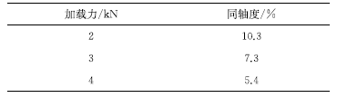 該次試驗(yàn)并沒(méi)有按照美標(biāo)要求施加足夠的載荷,因而不能得出結(jié)論說(shuō)彎曲度10.7%就不滿足試驗(yàn)機(jī)等級(jí)10級(jí)。該次試驗(yàn)的同軸度表明試驗(yàn)機(jī)滿足0.5級(jí),因?yàn)橥S度10.3%,符合標(biāo)準(zhǔn)要求的12%。