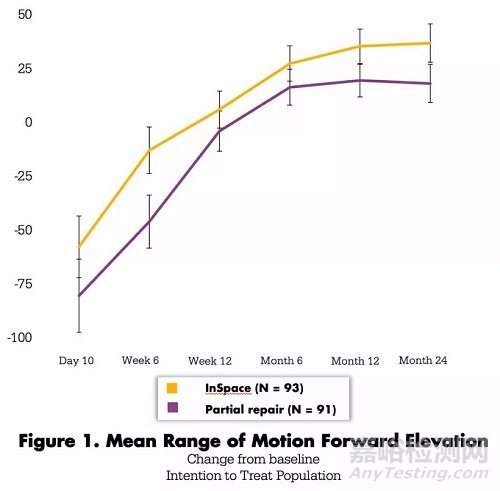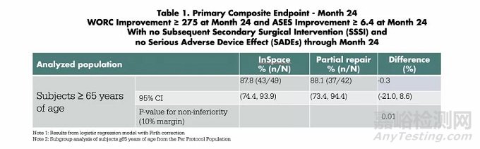 InSpace的一項前瞻性、單盲、多中心、隨機、受控、關(guān)鍵的研究,證明InSpace的安全性和有效性。研究顯示試驗組在 24 個月時的臨床成功率高,達到研究主要終點。 (InSpace:87.8%,Partial repair:88.1%)