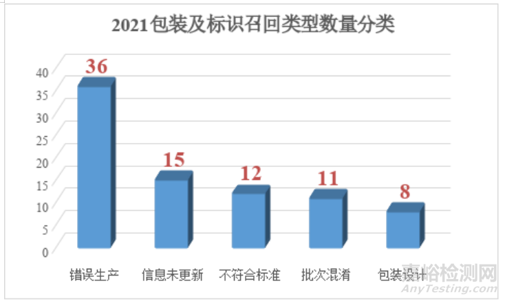 下面為了方便說明包裝或標(biāo)識(shí)哪一類問題,我將總體召回分為5個(gè)小類型,分別是:錯(cuò)誤生產(chǎn)、不符合標(biāo)準(zhǔn)、信息未更新、包裝設(shè)計(jì)和批次混淆。下面稍微對(duì)這幾個(gè)類型解釋一下。