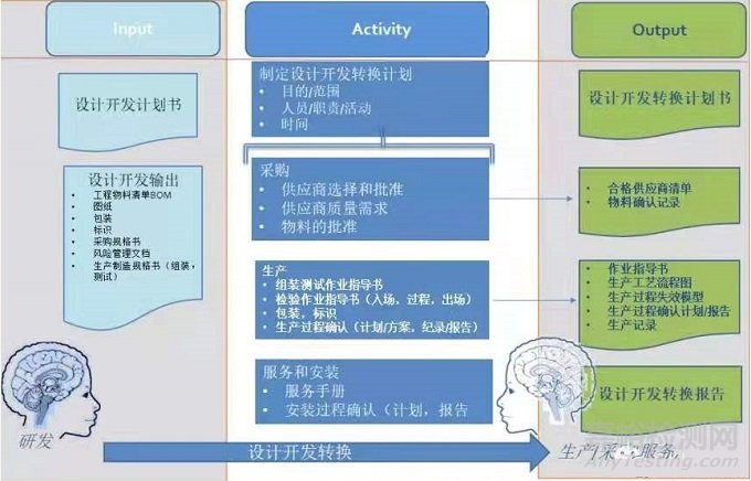 在設計開發(fā)策劃文件中,需要將設計開發(fā)轉換活動進行策劃,也可以單獨建立設計開發(fā)轉換計劃來明確設計開發(fā)轉換活動的起始時間、活動、需要的輸入、需要的輸出以及在過程中的相關主體及其職責的分配。