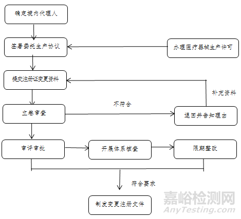 (三)變更醫(yī)療器械注冊證生產(chǎn)地址。代理人協(xié)助港澳醫(yī)療器械注冊人向國家藥監(jiān)局提交符合要求的申請材料。國家藥監(jiān)局器審中心按照程序開展審評審批工作。廣東省藥監(jiān)局按照醫(yī)療器械注冊質(zhì)量體系核查有關(guān)要求、生產(chǎn)質(zhì)量管理規(guī)范及其附錄的要求組織開展現(xiàn)場體系核查。經(jīng)技術(shù)審評及注冊質(zhì)量體系核查,符合要求的,準(zhǔn)予變更注冊,發(fā)放《醫(yī)療器械變更注冊文件》,載明受托生產(chǎn)企業(yè)名稱、生產(chǎn)地址及原注冊證號等信息。