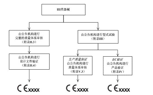 對(duì)于低風(fēng)險(xiǎn)的I類器械,其合格評(píng)定可由制造商單獨(dú)完成。對(duì)于IIa類、IIb類和III類醫(yī)療器械,以及無(wú)菌或測(cè)量功能的I類器械,MDD要求公告機(jī)構(gòu)強(qiáng)制介入其合格評(píng)定過(guò)程。此外, 對(duì)于IIa類、IIb類和III類器械,MDD提供了兩種合格評(píng)定模式供制造商選擇:通過(guò)全面質(zhì)量體系的設(shè)計(jì)保證或者通過(guò)型式試驗(yàn)的設(shè)計(jì)保證。