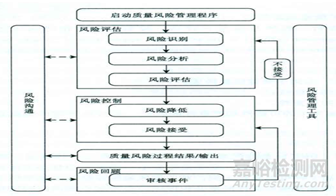 質(zhì)量風(fēng)險管理過程分為:確定事件并啟動風(fēng)險管理流程→風(fēng)險評估→風(fēng)險控制→風(fēng)險過程結(jié)果或輸出→風(fēng)險回顧。