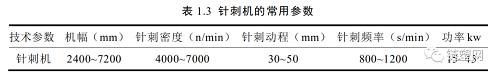經(jīng)成網(wǎng)機成網(wǎng)后的纖維網(wǎng)是處于一種蓬松的大厚度狀態(tài),整體結(jié)構(gòu)孔隙率大,需要對其進行機械加固以獲得擁有一定強度的氈材。而最為常用的機械加固手段就是針刺,針刺一般是利用帶有倒鉤的刺針,將纖網(wǎng)中水平分布或斜方向分布的纖維利用倒鉤刺入纖維層中心,使纖維改變原有的狀態(tài),纖維之間相互靠攏、纏繞。通過對纖網(wǎng)進行多次反復(fù)的機械針刺加固,使纖維與纖維互相緊密纏結(jié)而產(chǎn)生較大抱合力,并使纖網(wǎng)的密度提高,纖網(wǎng)的整體厚度也因此被壓縮,形成既結(jié)實又有強力的基體材料。設(shè)備為針刺機。