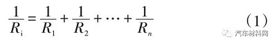 目前通用的高壓系統(tǒng)絕緣電阻計(jì)算方法是將高壓系統(tǒng)中包含的所有高壓部件的絕緣電阻進(jìn)行并聯(lián),進(jìn)而得到系統(tǒng)的絕緣電阻: