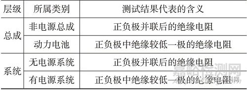 表2 電動(dòng)汽車絕緣電阻各類別測(cè)試結(jié)果所代表的含義