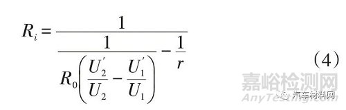 c.用2 個(gè)電壓檢測(cè)裝置同時(shí)測(cè)量動(dòng)力電池的正、負(fù)極與電平臺(tái)之間的電壓,并聯(lián)電阻側(cè)測(cè)量值為U2,另外一側(cè)測(cè)量值為