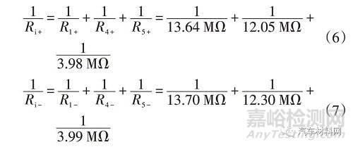 總成絕緣電阻中有6 個(gè)部件的絕緣電阻數(shù)量級(jí)達(dá)到GΩ 級(jí)別,本次驗(yàn)證的目的主要為2 種計(jì)算方法的對(duì)比,對(duì)測(cè)試誤差不做過多要求,因GΩ 級(jí)別對(duì)計(jì)算影響過小,可認(rèn)為是無窮大,在計(jì)算中可忽略。