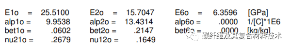 然后將這些關(guān)系計(jì)算為平面內(nèi)模量、泊松比、CTE、水分膨脹系數(shù)和抗彎剛度模量的工程特性: