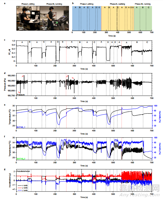 人體實驗身體活動分析。圖片來源:Nature electronics