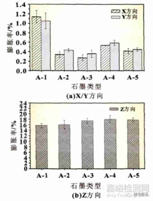 (4)不同類型石墨,在X/Y、Z三個方向膨脹率差異均較大,其中X/Y方向的膨脹大小對電芯變形影響較大。