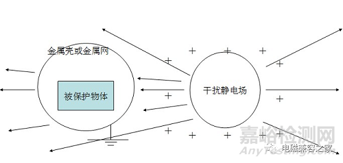 屏蔽方法:將一塊金屬板放置在兩個(gè)被屏蔽的電路中間,并將每個(gè)金屬板連接到地面上,如圖所示。這樣,從一點(diǎn)發(fā)出的電源線就被屏蔽板堵塞,即靜電屏蔽。