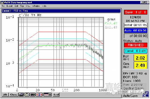 控制譜:又稱響應(yīng)譜,是指在振動(dòng)臺(tái)面上從安裝在控制點(diǎn)的傳感器采集到實(shí)際的隨機(jī)信號(hào)譜圖。從試驗(yàn)的真實(shí)性上講,控制譜和參考譜應(yīng)該是一致的。但由于隨機(jī)信號(hào)的不確定性以及振動(dòng)試驗(yàn)系統(tǒng)本身存在的細(xì)微的時(shí)變性,使得控制譜和參考譜存在一定的誤差。這個(gè)誤差通常用容差帶來(lái)表示,其單位是dB。