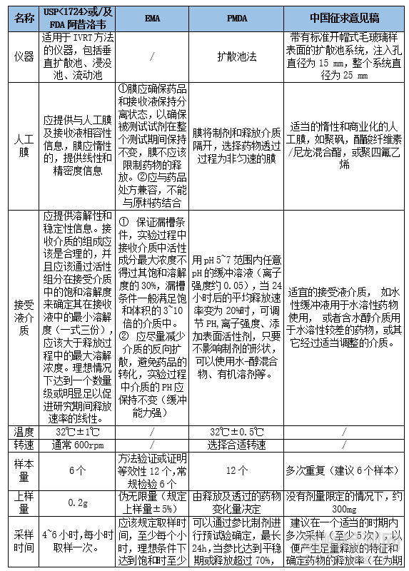 美國(guó)食品藥品監(jiān)督管理局(FDA)已發(fā)布了多個(gè)外用半固體制劑仿制藥的指導(dǎo)原則,若干仿制藥如處方中的原料藥和輔料的質(zhì)量(Q1)、數(shù)量(Q2)及物理性能與微觀結(jié)構(gòu)(Q3)和參比制劑相同或相似,完成IVRT后可不必再進(jìn)行生物等效性研究。各國(guó)藥品監(jiān)管部門發(fā)布的有關(guān)外用半固體制劑研究技術(shù)的指導(dǎo)原則中均有關(guān)于IVRT的指導(dǎo)意見的描述,但其中一些試驗(yàn)條件與操作方法仍缺乏統(tǒng)一的標(biāo)準(zhǔn)化信息,同時(shí)由于語言的差異,導(dǎo)致研究人員在裝置設(shè)計(jì)和實(shí)驗(yàn)方案上仍有較大的隨意性。研發(fā)工作的合理與否,將直接影響結(jié)果的可靠性,因此有必要對(duì)外用半固體制劑IVRT相關(guān)指南及關(guān)鍵技術(shù)參數(shù)進(jìn)行對(duì)比歸納與總結(jié)。