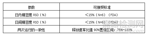 性能參數(shù):按照USP<1724>章中規(guī)定的程序進(jìn)行,通過使用氫化可的松乳膏進(jìn)行IVRT實(shí)驗(yàn),通過比較兩次IVRT運(yùn)行在兩個(gè)不同日期的氫化可的松的釋放速率,評(píng)估兩次IVRT運(yùn)行的等效性,作為實(shí)驗(yàn)室鑒定的一部分,運(yùn)行內(nèi)和運(yùn)行間的變化通過計(jì)算每次運(yùn)行和釋放的變化系數(shù)來確定。